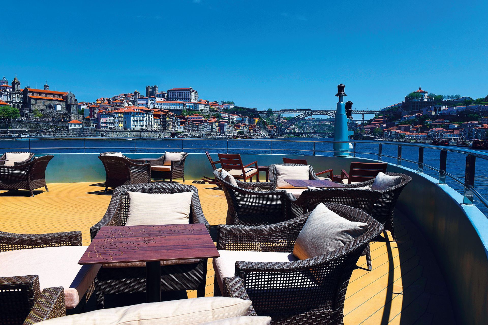 Bathed in sunlight and looking beautiful, there she is waiting for us. Riviera Travel's gleaming, streamlined, five-star Douro Splendour river boat rests in Porto's stunning harbour ready to sail serenely along Portugal's main river for eight days.
