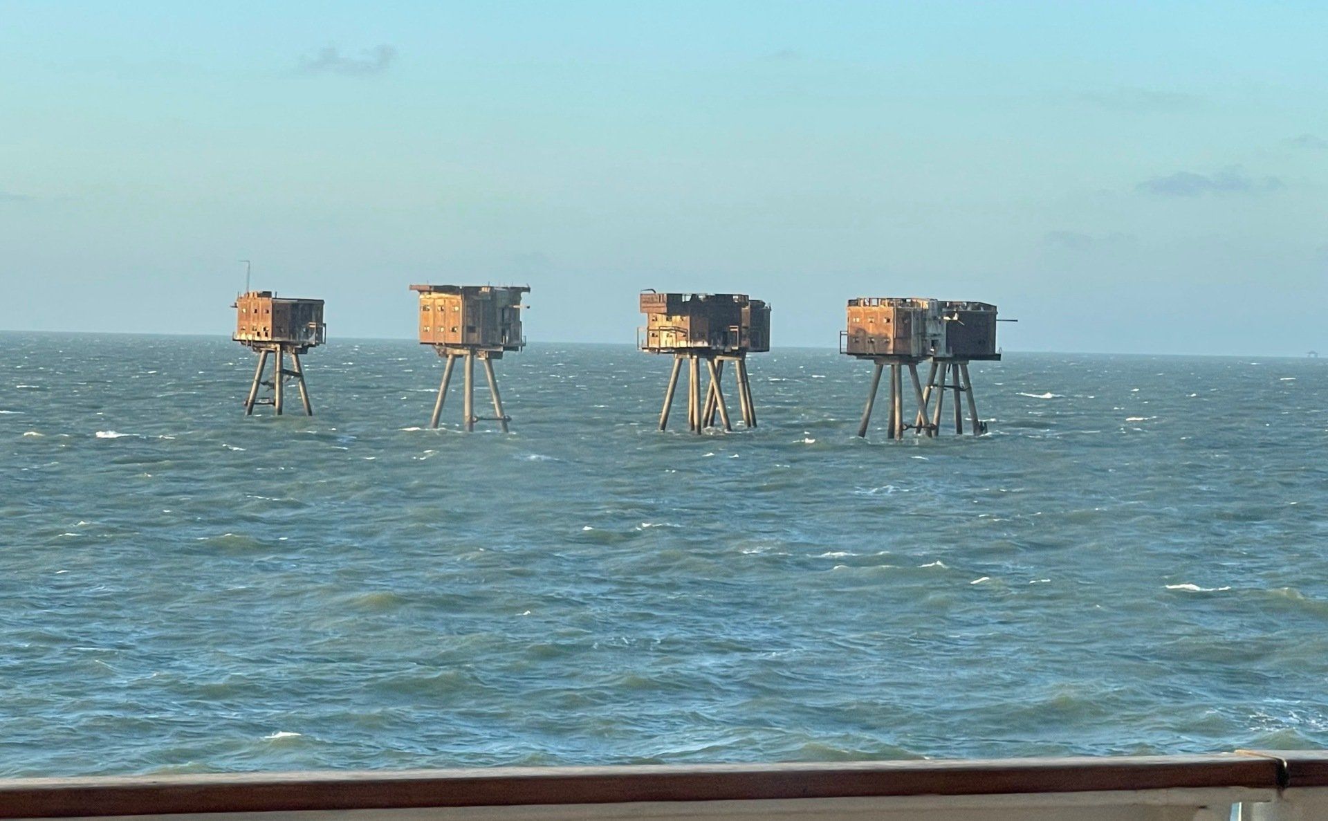 We were soon to be sailing, so we quickly joined other excited fellow guests for the sail away deck party. Drinks in hand we slowly pulled away from our berth and started sailing down the Thames Estuary. With a casual dress code for the evening we made our way to the Botanical Lounge Bar on deck 7. This bar proved to be our favourite pre-dinner drinks spot for the cruise. As we arrived at the lounge I glanced out to sea and saw we were sailing very close to 4 large structures looming above the waves like tripods from the film ‘War of the Worlds’. These were the Maunsell Sea Forts built during World War II as armed forts to help defend the UK from enemy aircraft. In the sixties they were subsequently occupied and used as pirate radio stations. Rather co-incidentally this was a theme cruise called the ‘Voices of Radio’ with legendary pirate and Luxembourg DJ’s Mark Wesley, Tony Prince, Chris Beard and Mike Read giving various talks about their radio days and disco sessions in the Observatory Lounge. A number of theme cruises are planned on Ambience during her maiden season, and if the radio theme is anything to go by will prove to be very popular.