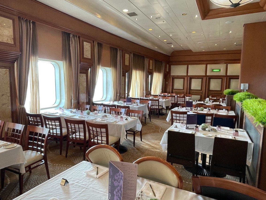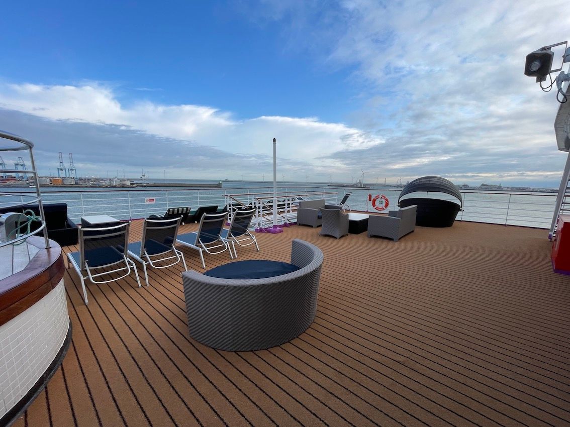 We were soon to be sailing, so we quickly joined other excited fellow guests for the sail away deck party. Drinks in hand we slowly pulled away from our berth and started sailing down the Thames Estuary. With a casual dress code for the evening we made our way to the Botanical Lounge Bar on deck 7. This bar and SW19 proved to be our favourite pre-dinner drinks spot for the cruise