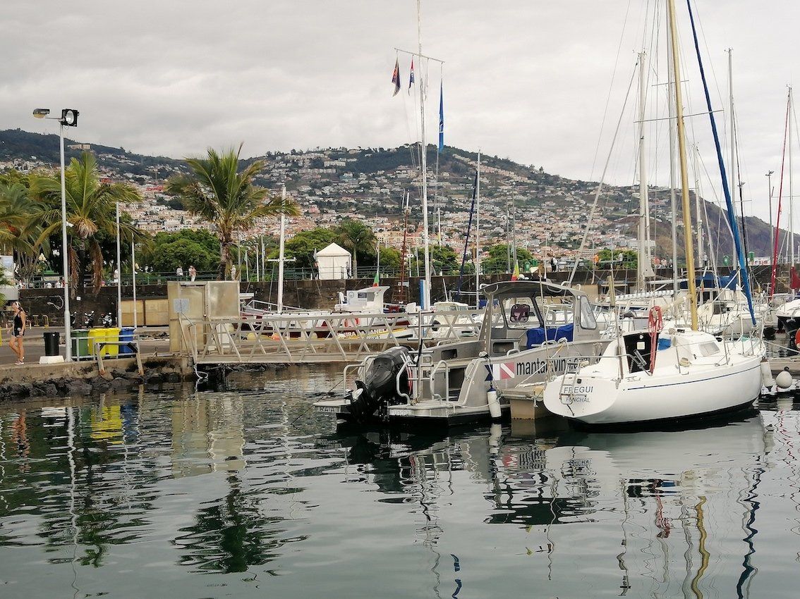 Late afternoon, back in Funchal, we board a yacht owned by Maria Joao Velosa and Marco Noronha Jardim and sail along the coastline. We pass the rose-pink painted Reid's Palace Hotel, perched high on a cliff. I look back at Funchal Mountain clothed with its jigsaw of corrugated, terracotta-roofed buildings. We sample a bottle or two of Maria and Marco's award-winning wine produced in their Terrabona family vineyard in the north of the island. This couple host private cruise and wine-tasting tours. Maria brings out plates of caprese salad - ripe, juicy vine tomatoes sliced alongside ovals of marshmallow soft mozzarella cheese, and bitter black olives, drizzled with golden olive oil. Then, typical Madeira dishes of mashed cod and beans, slow-roasted tuna in olive oil and a basket of local rustic bread. Will we be able eat dinner this evening? Another glass of wine and we hardly give it another thought.